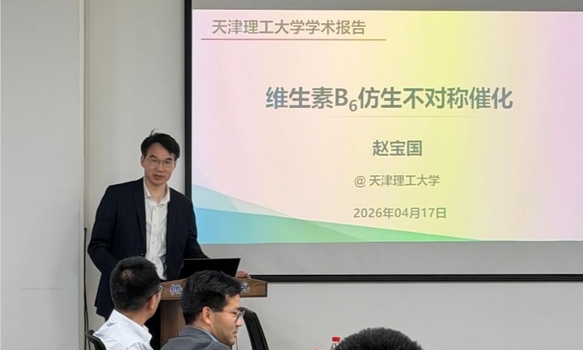 赵宝国教授作了题为《维生素B6仿生不对称催化》的学术报告,阐述了发展维生素B6依赖酶仿生催化的历程和成果。
