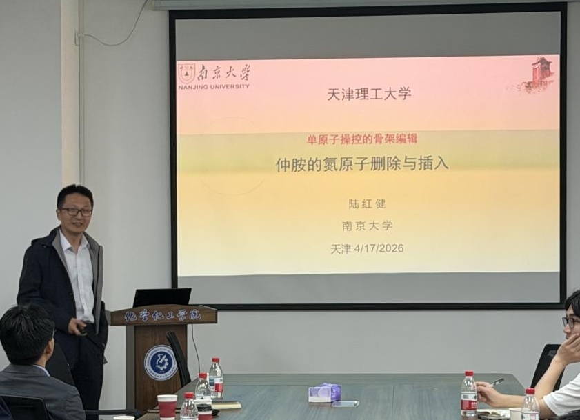 陆红健教授作了题为《单原子操控的骨架编辑:仲胺的氮原子删除和插入》的学术报告,使用小位阻的亲电胺化试剂实现多种挑战性的偶联和骨架编辑反应。