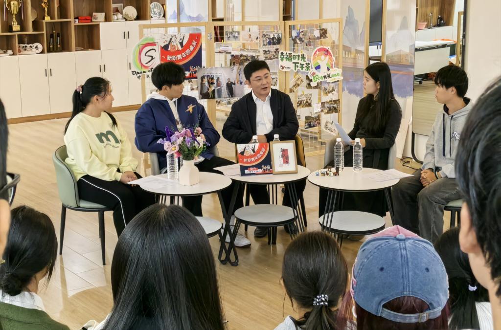 与此同时,01级校友付磊在五育活动室主持“新职青年圆桌派访谈”,以“跨界成长,将经历转化为竞争力”为主题,与在校生交流跨界发展的心路历程,激励青年勇于尝试、善用经历塑造核心竞争力。