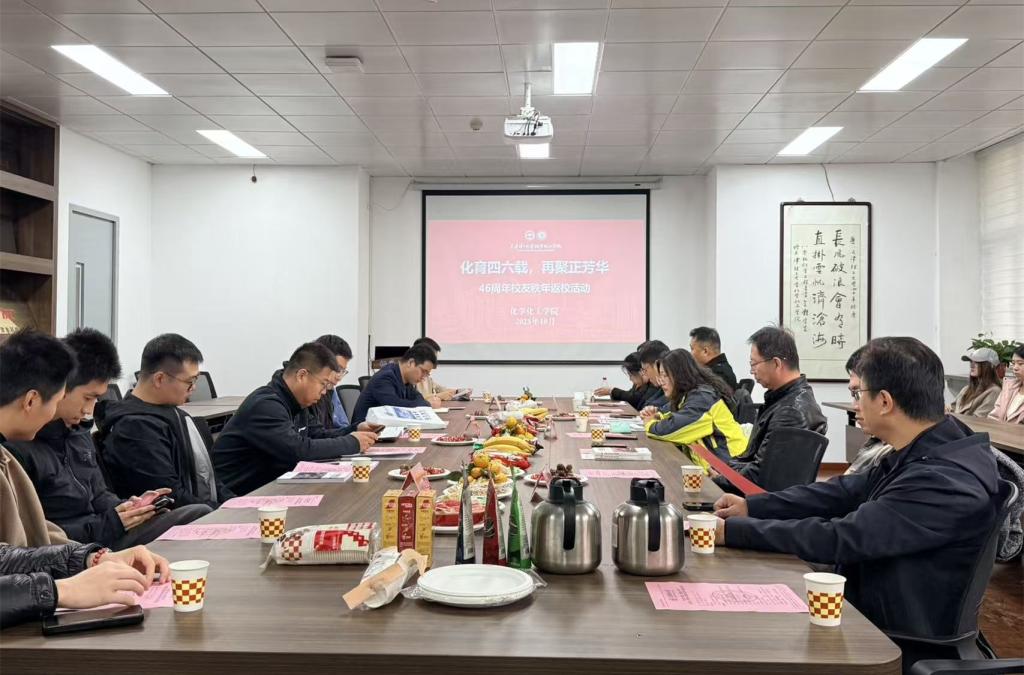 金秋十月,情系母院。10月25日上午,化学化工学院46周年校友秩年返校活动在19-216会议室隆重举行。学院党委副书记郭增玉、制药工程专业主任张有来、教师代表、学生代表与秩年返校校友欢聚一堂,共叙情谊、共话发展。活动由校友工作负责人孙家刚主持。