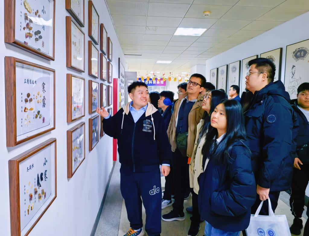 欢迎会后,研学团移步至学院中医药文化科普展廊进行参观学习。在辅导员孙家刚老师的细致讲解下,师生们从琳琅满目的中药材饮片、精妙的炮制技艺,到顺应四时的养生之道、节气药茶,全方位领略了中医药“天人合一”“辨证施治”的哲学思想与独特智慧。