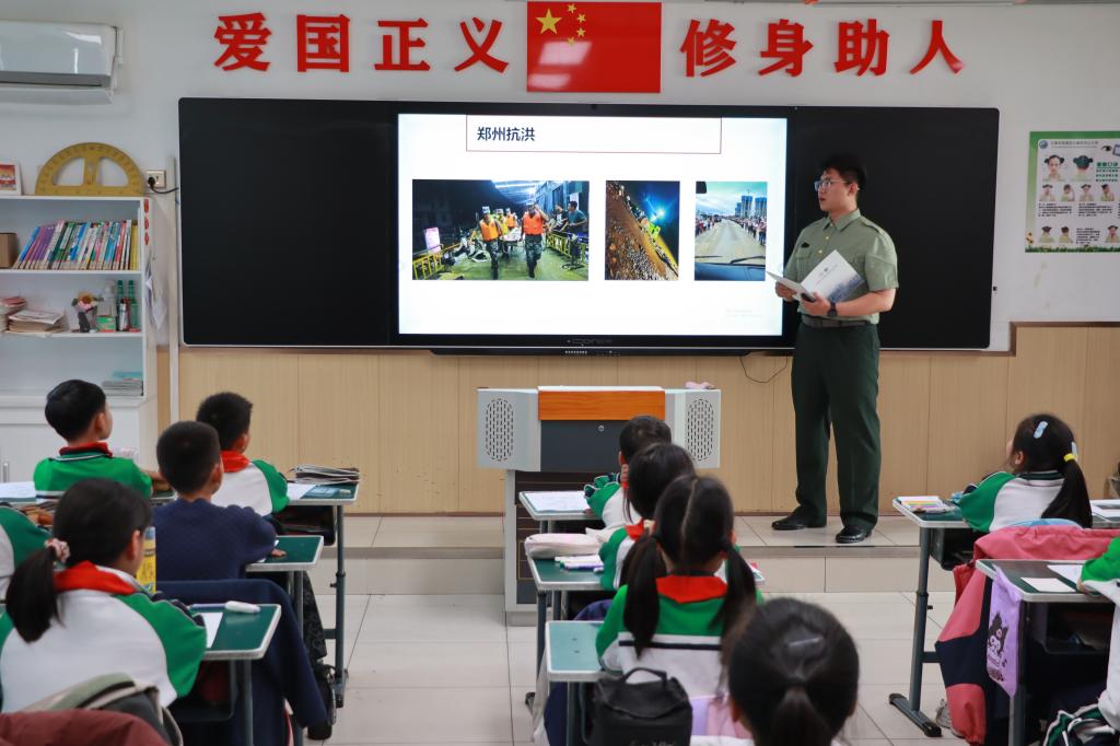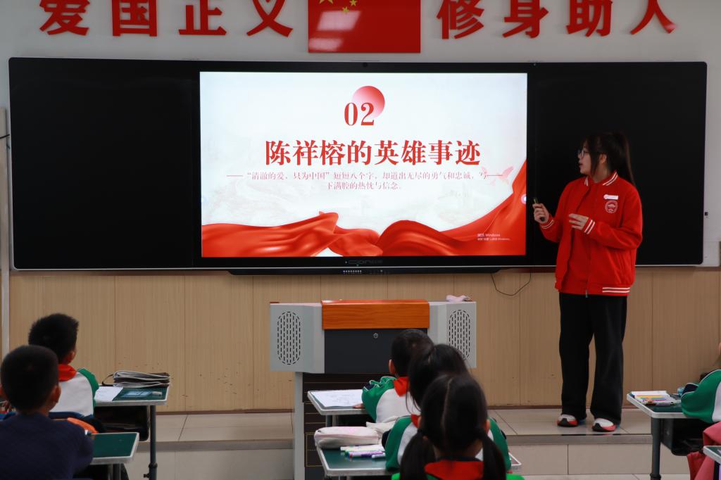 活动现场,退役士兵楚林垚身着军装登台,以“军人的信仰”为题,结合自身在军营中坚守岗位、甘于奉献的亲身经历,用“站军姿磨破的作训服”“深夜巡逻的手电光”等细节,向小学生诠释“忠诚与担当”的朴素内涵,国防教育种子悄然播撒。随后,“青马工程”学员张玉丽接力讲述卫国戍边英雄陈祥榕等先烈事迹,当“清澈的爱,只为中国”的誓言被全场齐诵,孩子们挺直腰板、目光坚定,有的眼眶微红,有的小声念叨“英雄好厉害”。
