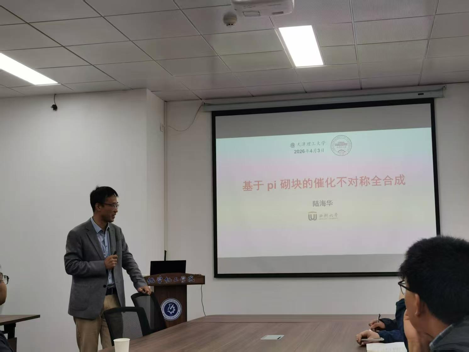 为进一步深化与高水平科研团队的交流合作,提升人才培养质量。4月3日我院邀请西湖大学陆海华研究员来校进行学术交流并作了题为《基于pi砌块的不对称全合成》的学术报告,学院相关学科带头人、青年骨干教师和研究生代表参加了本次学术报告会。