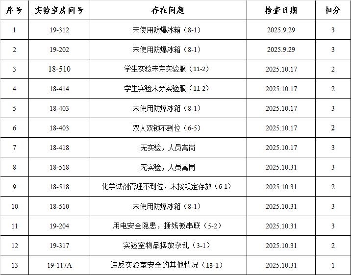 化学化工学院实验室安全检查通报