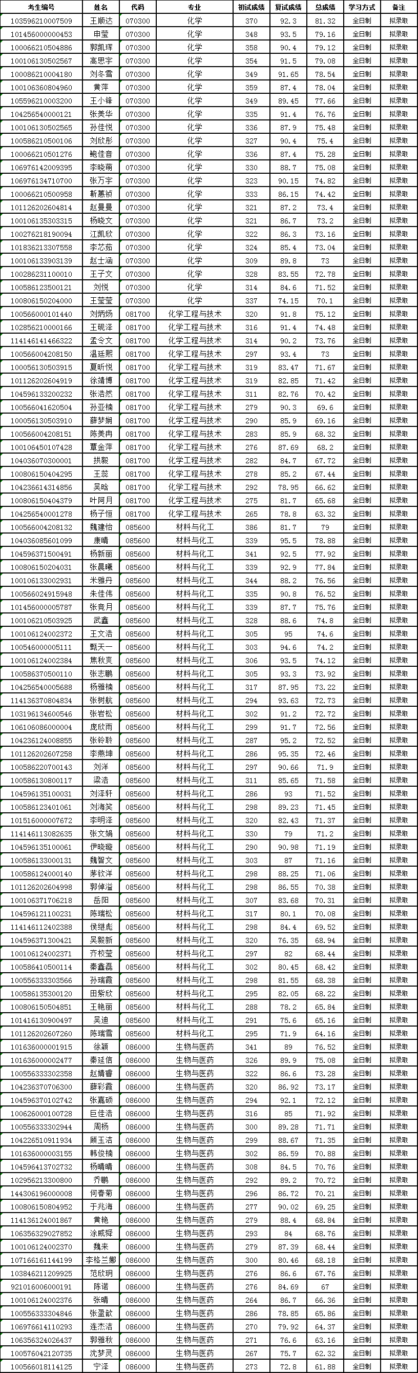 根据《天津理工大学2026年硕士研究生招生复试录取工作方案》要求,现对2026年化学化工学院化学(全日制)、化学工程与技术(全日制)、材料与化工(全日制)、生物与医药(全日制)专业拟录取硕士研究生一批次调剂名单进行公示。